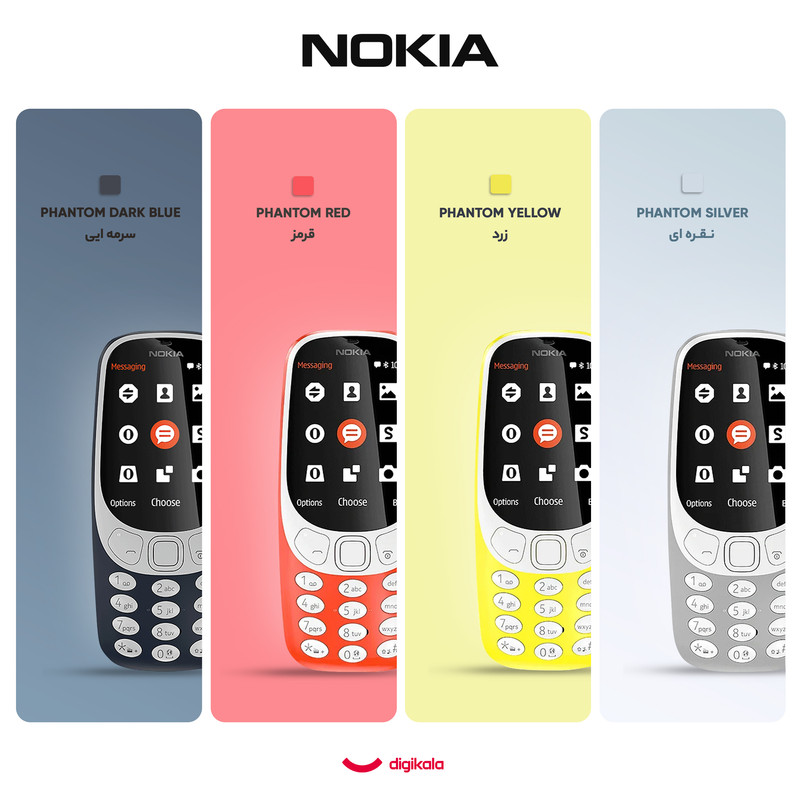 «نوکیا» تولیدکنندهی گوشیهای موبایل کلاسیک قدیمی، بهتازگی محصول جدیدی را با عنوان «3310 نسخهی 2017 دو سیمکارت» (3310 (2017) Dual SIM) تولید کرده است و بهزودی در اختیار کاربران قرار خواهد داد. نوکیا در طراحی ویژهی 3310 صفحهکلیدی قرار داده که تایپ و ارسال پیامک بهوسیله آن بسیار آسان خواهد بود؛ همچنین این محصول از دو سیمکارت پشتیبانی میکند و حدود 79 گرم وزن دارد. نوکیا 3310 را به نمایشگری 2.4اینچی مجهز کرده که از نوع LCD بوده و در ساخت آن از فناوری TFT بهره گرفته شده است. این نمایشگر قابلیت نمایش 256 هزار رنگ را دارد و میتواند با توجه به ابعادش تراکم پیکسلی 167 پیکسل بر هر اینچ را به تصویر بکشد. همانطورکه اشاره شد، شما بهعنوان کاربر میتوانید دو سیمکارت در سایز مایکرو را درون شیارهای 3310 قرار دهید و از آن برای برقراری ارتباط استفاده کنید. بد نیست بدانید این دو سیمکارت تنها از شبکهی G2 پشتیبانی میکنند و به شبکههای دیگر اینترنت دسترسی ندارند. از دیگر راههای ارتباطی در محصول جدید نوکیا میتوانیم به EDGE، بلوتوث نسخهی 3.0 و رادیو FM اشاره کنیم. مانند بسیاری از محصولات کلاسیک، در 3310 هم خبری از دوربین سلفی نیست و روی قاب پشتی آن سنسوری دو مگاپیکسل نقش دوربین اصلی را ایفا میکند. این دوربین به فلشی از نوع LED مجهز شده و قابلیت فیلمبرداری هم دارد. وظیفهی تامین انرژی این مجموعهی امکانات 3310، به باتری لیتیومیونی با ظرفیت 1200 میلیآمپر ساعت سپرده شده که با یکبار شارژ کامل میتواند امکان 22 ساعت مکالمه را برای کاربران فراهم کند. لازم به ذکر است که این گوشی به کیبورد با زبان فارسی مجهز شده است.